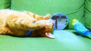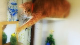 インコにあそんでほしいネコ 様子をうかがう姿がかわいいです☆