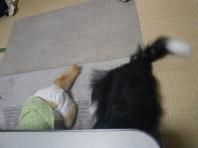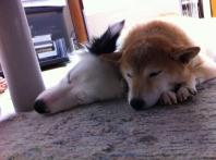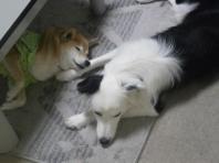 多分ちょっと前の画像です。うちのスズ(柴犬)とパン(らしくないけどボーダーコリー)。とっても仲良しです。