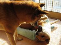 今日のワンズ▽・ェ・▽ノ 寝てる弟に起きてと近づくと怒られた。 可哀想な兄ちゃん。