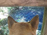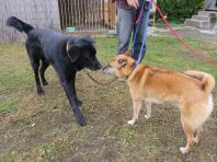 じぃじの家の大きな黒ワンコゆうすけ兄貴にご挨拶。ゆうすけ兄貴はゴールデンレトリバーと秋田犬のMixなの