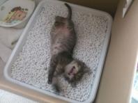 お、ウンチした。しかし風邪でもひいたのかな、弱ってるし食欲もないな、、、半身浴がよくなかったか?? む~~