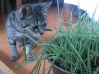 猫草、食うのか食わんのか! こぴっと食べれし!