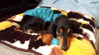 M.ダックスのRUN(♀)とウーパールーパーのトボしゃん(♂)と生活中~♡ 写真は先住犬のLUSTYです。 皆さん!仲良くしてくださいね♪