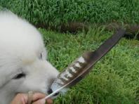 どんな鳥さんの落し物だろう・・・クンクン・・・