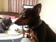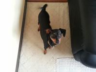 我が家に居る5頭の中の親分ミニピン、マリンと見切れてるクロンです^^